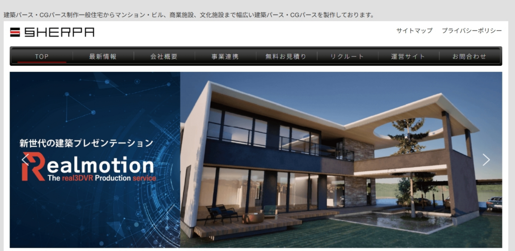 | 株式会社シェルパ | 2万円~ | 可 | 可 | CG | ・建築ビジュアライゼーション ・設計経験者が制作に携わる ・最短1日の納品体制 | 株式会社シェルパ公式HP |