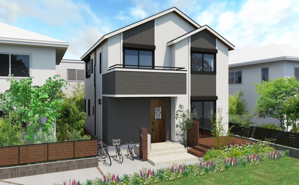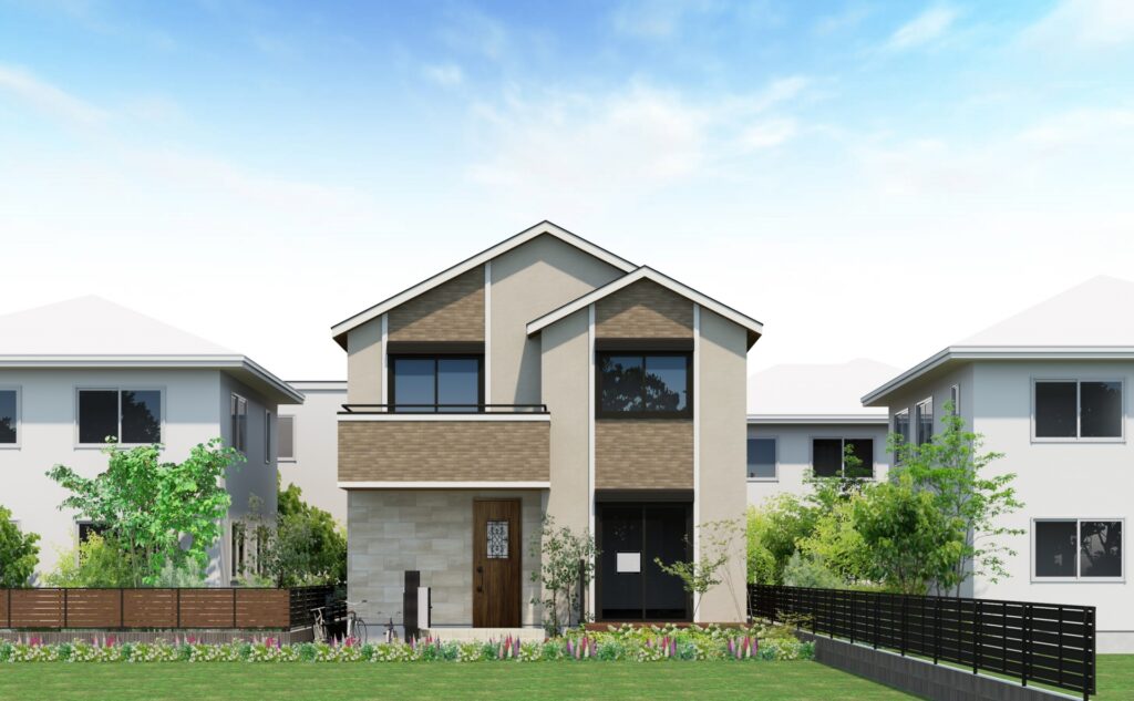 CGパースを使えば、このような完成後の外観イメージを営業ツールとして即活用できます。夜の雰囲気まで伝わるので、購入検討者に強い印象を残せます。