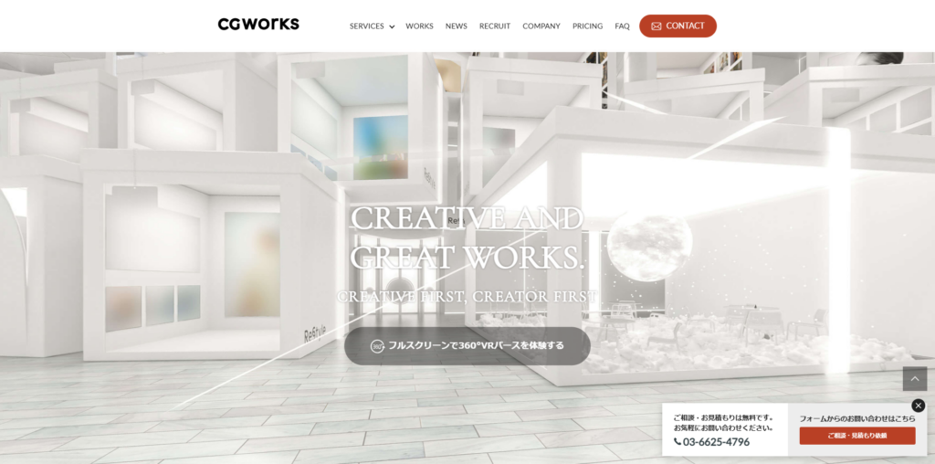 住宅や店舗・施設・駅舎など幅広いジャンルの実績があり、360°VRや動画パースにも対応可能です。丁寧な制作姿勢で、1点ずつ品質を重視した依頼をしたい方に適した制作会社です。