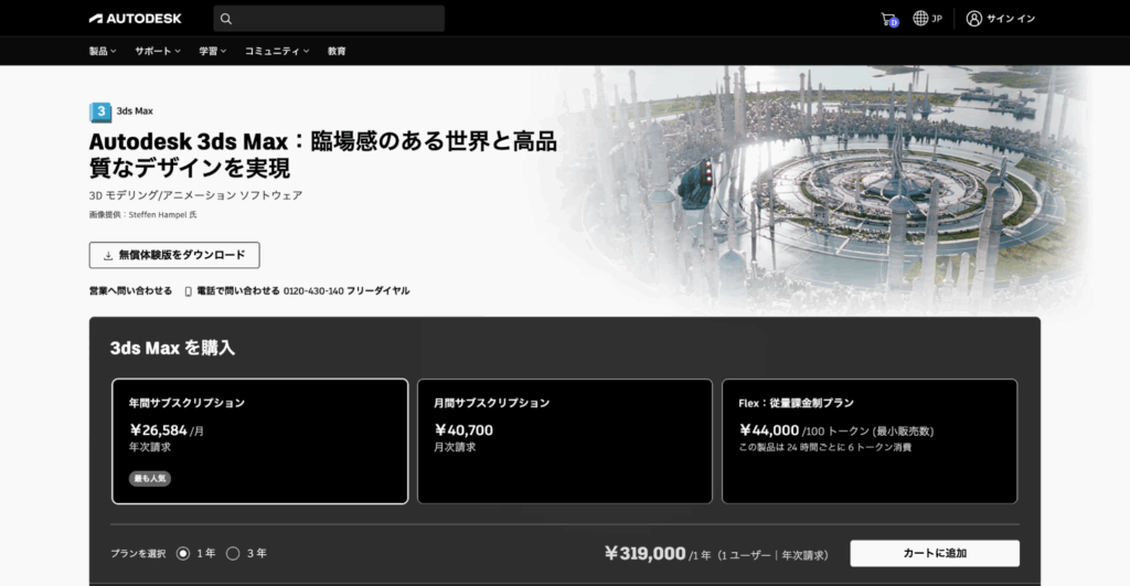 3ds Maxは、建築・設計・製造などあらゆる業界で利用されている定番のソフトです。直感的な操作性と豊富なコマンド機能を備え、複雑な設計作業でも効率的に進められます。