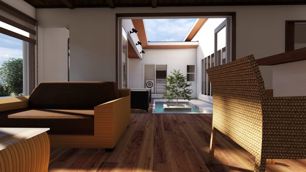 建築パースを外注する最大のメリットは、プロによる高品質な仕上がりです。照明・質感・構図などの表現力が格段に高く、実際の建物を想起させるリアルなパースを短期間で入手することが可能です。