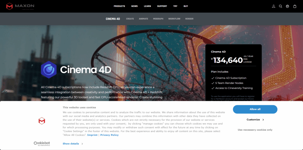NVIDIA OptiX対応GPUによる高速レンダリングで、制作スピードと品質の両立を実現しています。また、日本語UI・マニュアルが標準搭載されており、国内ユーザーにとって導入しやすい点も魅力です。