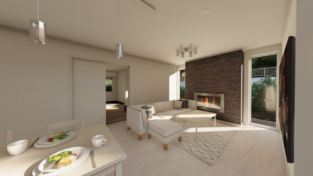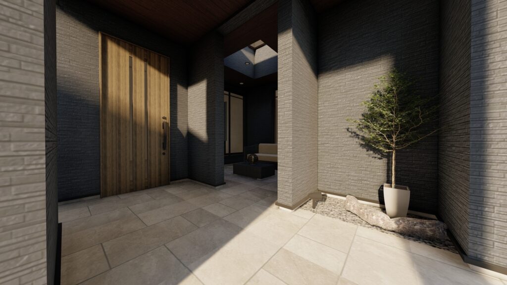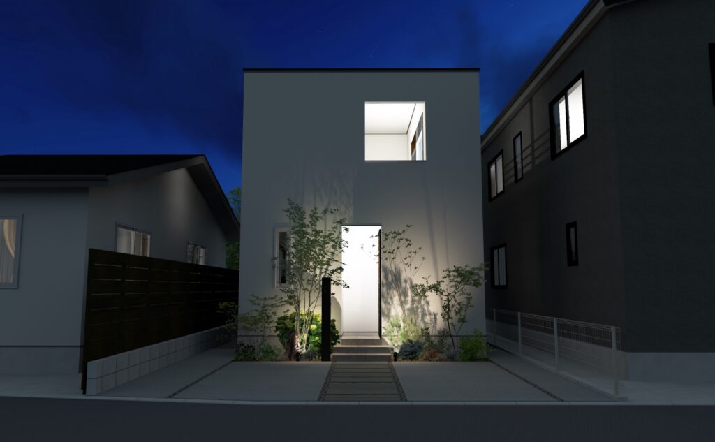 CGパースを使えば、このような完成後の外観イメージを営業ツールとして即活用できます。夜の雰囲気まで伝わるので、購入検討者に強い印象を残せます。