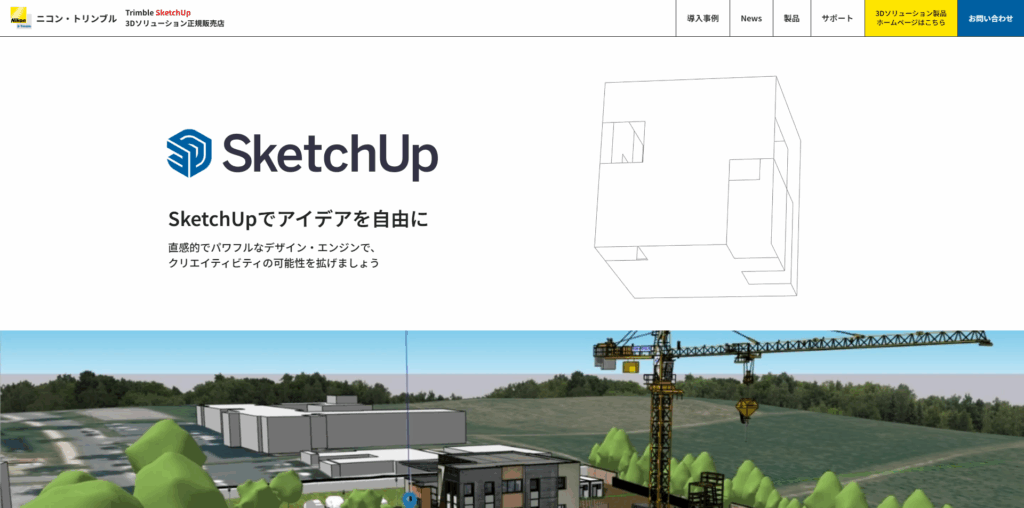 SketchUpは、建築・設計・土木など幅広い分野で活用される3Dモデリングソフトです。線と面を描くだけのシンプルな操作で立体化できるため、初心者でも扱いやすく、プロの精密設計にも対応します。