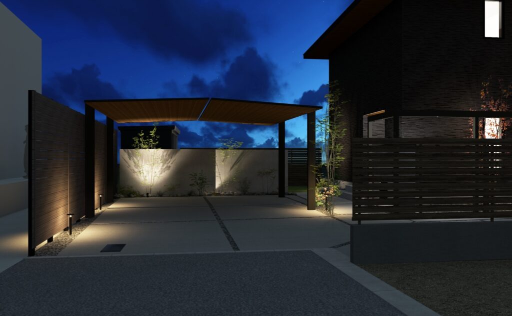 CGパースを使えば、このような完成後の外観イメージを営業ツールとして即活用できます。夜の雰囲気まで伝わるので、購入検討者に強い印象を残せます。
