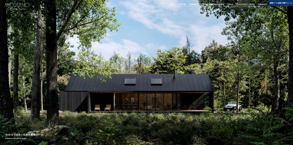 | 株式会社モデルノ | ・内観パース:99,000円~ ・外観パース:99,000円~ | CG | ・意図を読み解く制作力 ・光や時間の演出が得意 ・低単価プランも用意 | 株式会社モデルノ公式HP |