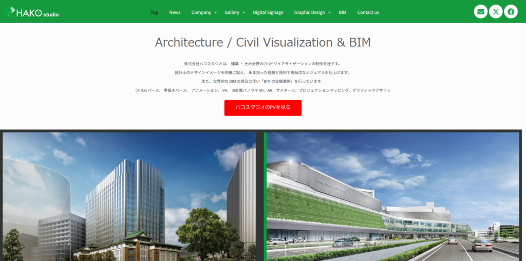 | 株式会社ハコスタジオ | 要見積もり | 手描き・CG | ・建築・土木分野に特化 ・コンペ実績が非常に豊富 ・BIM支援まで一貫対応 | 株式会社ハコスタジオ公式HP |