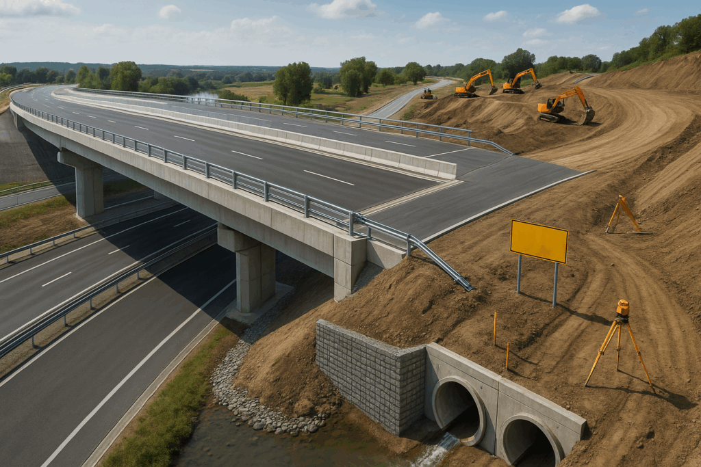 土木パースは道路拡幅・歩道計画・立体交差・橋梁などスケールの大きい構造物を可視化した手法です。構造体の見え方や景観への影響を示せるため、プレゼン資料として有用です。周辺住民への説明にも活かせます。