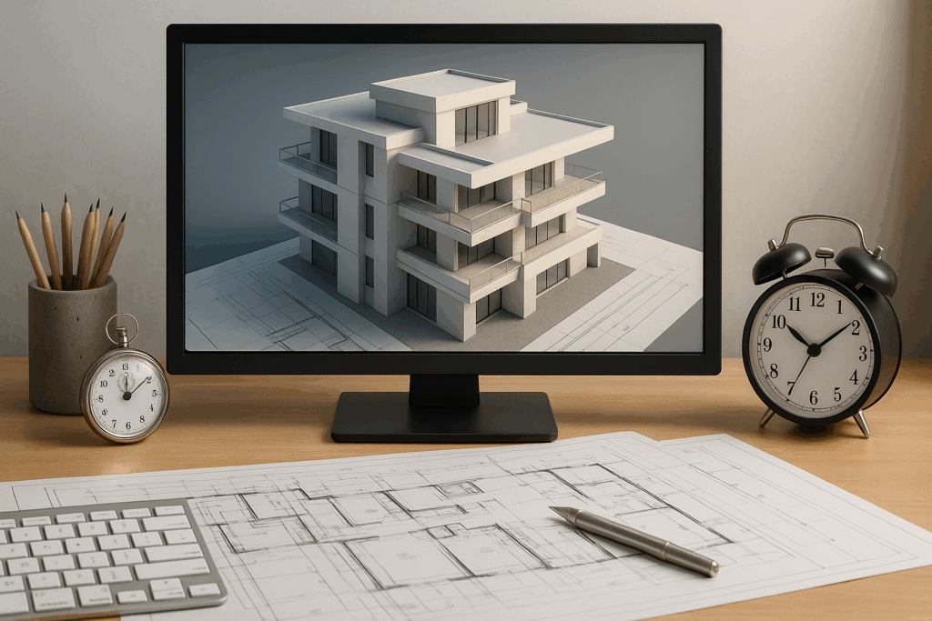 さらに、大規模な複合施設や商業施設のCGパースとなると、半年以上の制作期間がかかることもあります。たとえば5階建ての商業ビルでは、モデリングに約1ヶ月、質感や照明設定に1ヶ月、レンダリングに1ヶ月と、合計で4ヶ月ほどを要する場合があります。
