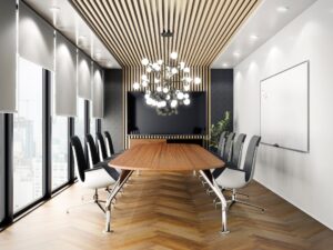 オフィスにおいては、働きやすさとデザイン性を両立する空間を提案するためにインテリアパースが役立ちます。執務室や会議室、休憩スペースなどをパースで示すことで、事前に内装や雰囲気を掴みやすくなります。