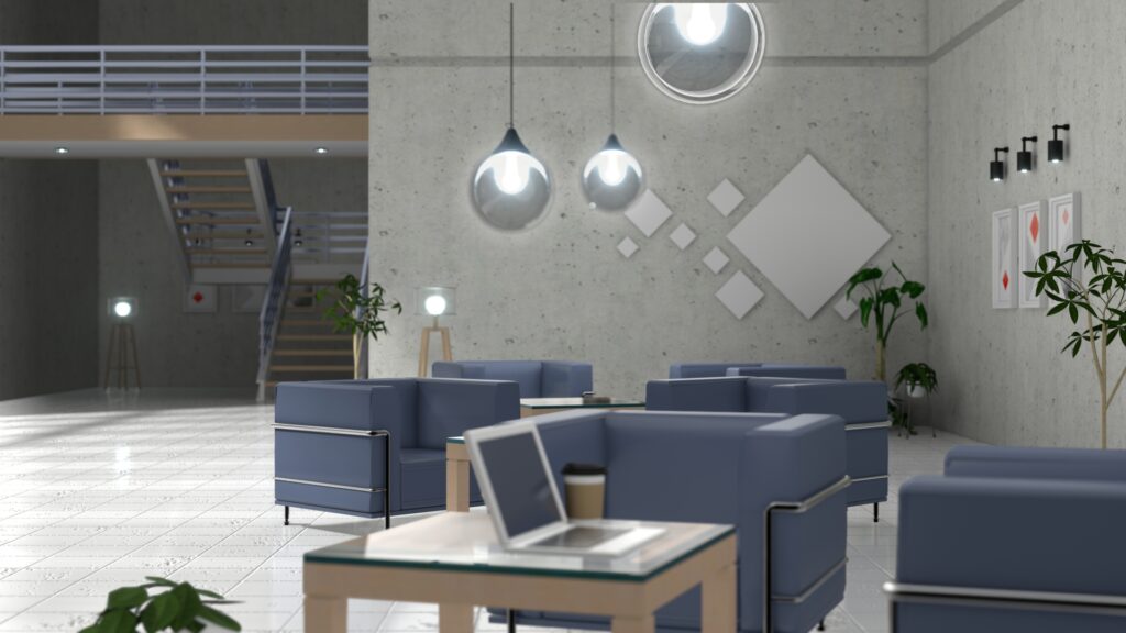 中規模の内観CGパースの相場は、約4万〜50万円です。オフィスビルや中型の商業施設の室内を表現するため、デザインの精度が求められます。
