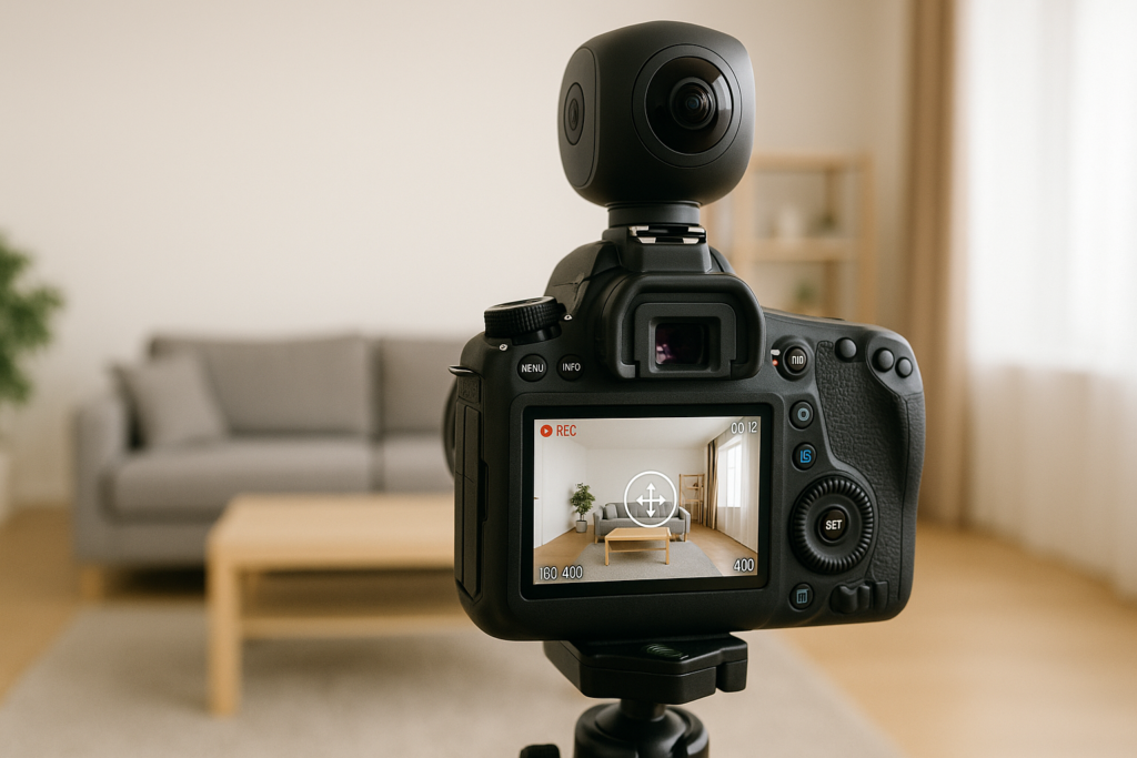 VR内覧用の撮影では、360度カメラを設置しながら室内を順番に撮影します。家具の配置や光の入り方など、物件の印象を左右する要素を丁寧に確認しながら進めましょう。
